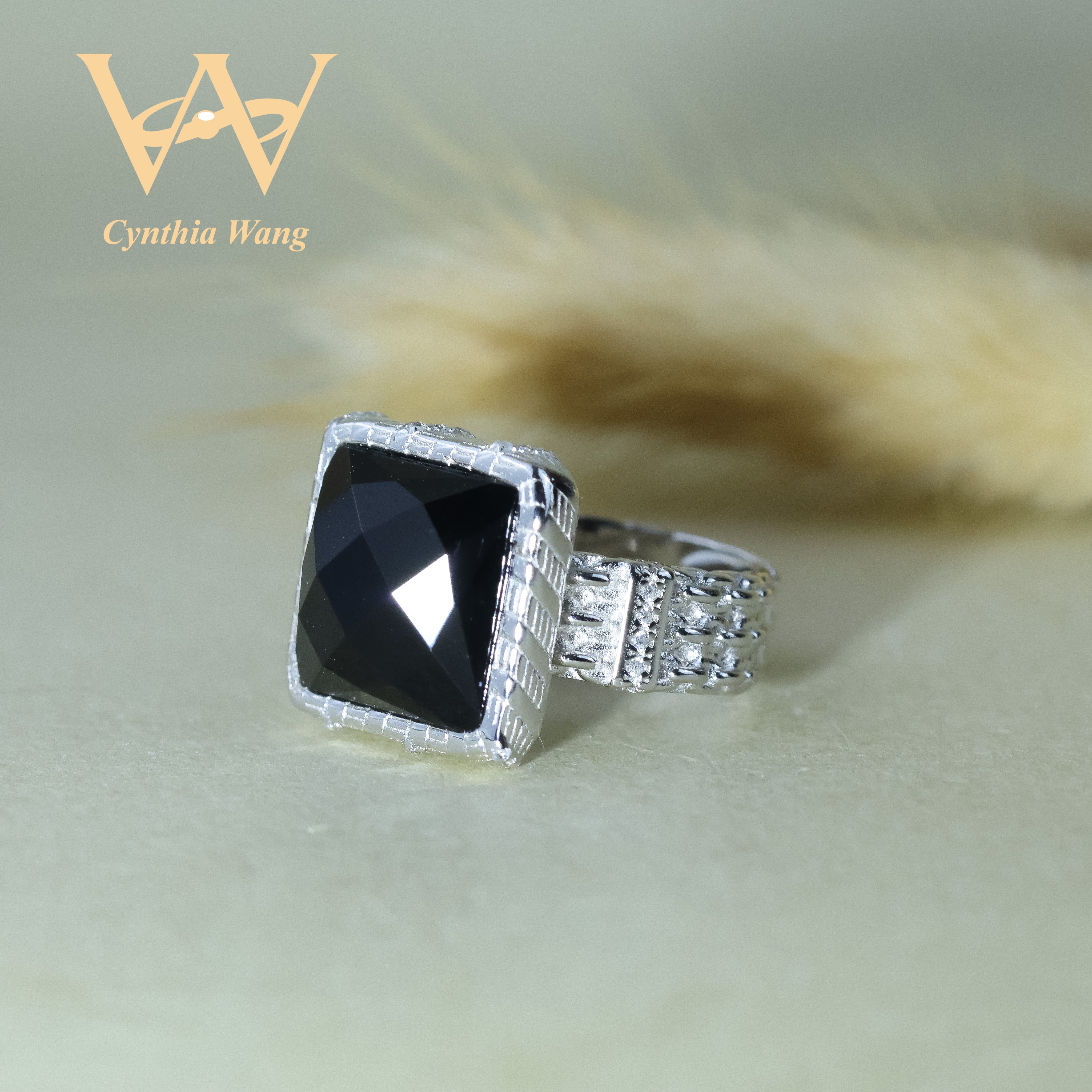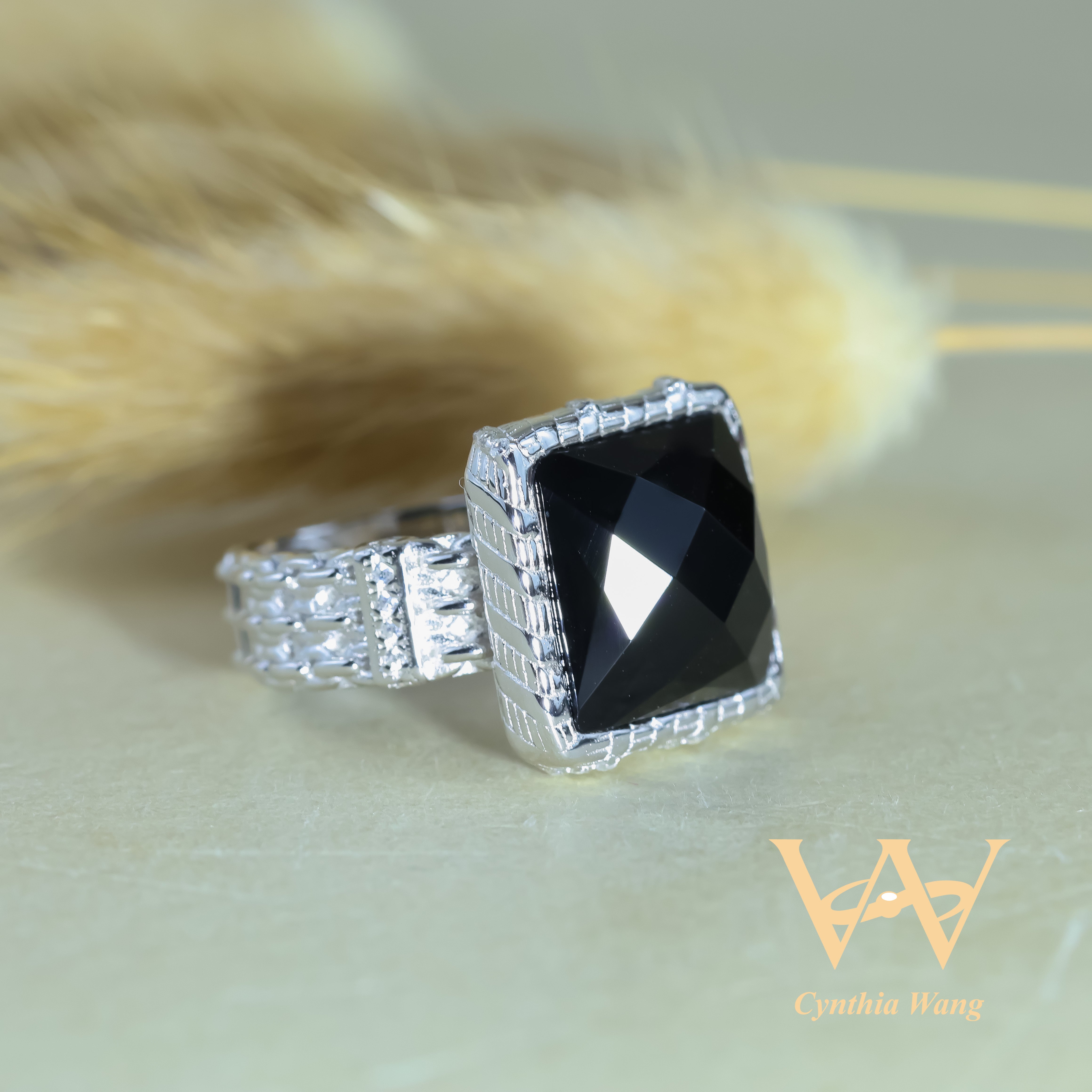 Indulge in luxury with our 'Deep Charm' Black Onyx Ring. Made from premium 925 silver, this exquisite ring features a refined square cut and intricate craftsmanship. Its timeless design exudes sophistication and elegance, perfect for both men and women. Elevate any outfit with this fashionable and opulent piece.